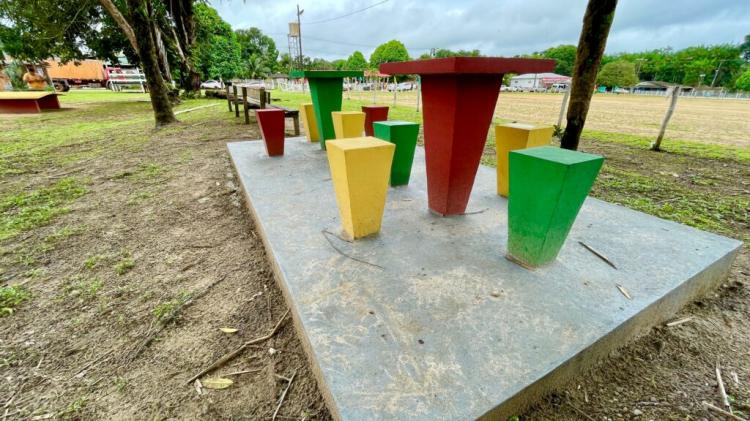 Área de lazer tem duas mesas de xadrez e dama; mesa de tênis; futmesa; balanços; barra; escorregador; bebedouro pet e gangorras | Foto: Jesiel Braga/PMM