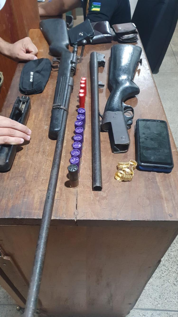 Já na segunda ocorrência, a equipe da PRF encontrou atrás do banco do veículo abordado uma coronha de uma arma de fogo, o que gerou suspeitas sobre o transporte de ilícitos. Na sequência dos trabalhos, foram encontradas duas armas de fogo, sendo uma espingarda cal.12 e uma espingarda cal.32 e mais 14 munições. O motorista e o passageiro foram detidos e encaminhados à Polícia Civil, por porte ilegal de arma de fogo.