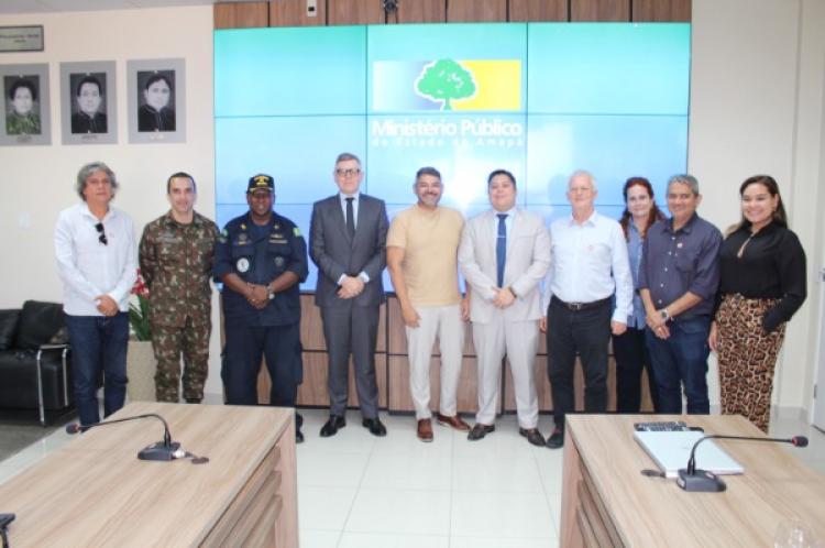 O procurador-geral de Justiça do Ministério Público do Amapá (MP-AP), Paulo Celso Ramos, recebeu na sala de reuniões da Procuradoria-Geral de Justiça (PGJ) representantes da Plataforma Logística do Amapá – PLALogistics, para apresentação do projeto de implantação do empreendimento. O conselheiro do Tribunal de Contas do Amapá (TCE-AP), Reginaldo Ennes; o representante da 22ª Brigada de Infantaria de Selva, Major de Infantaria Rodrigo Vieira; e o capitão dos portos da Marinha do Brasil, João Batista, também participaram da reunião.