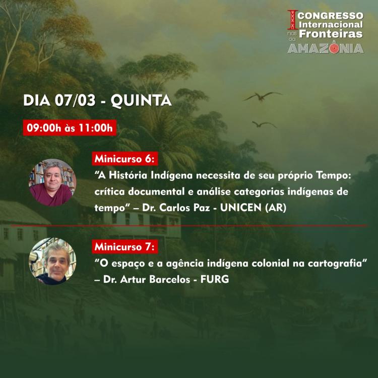 Os minicursos vão abordar temáticas como: “O espaço e agência indígena colonial na cartografia”, “Amazonas, fronteiras e viagens pela costa setentrional do Grão Pará” e “Alteridades en la Europa Medieval”.