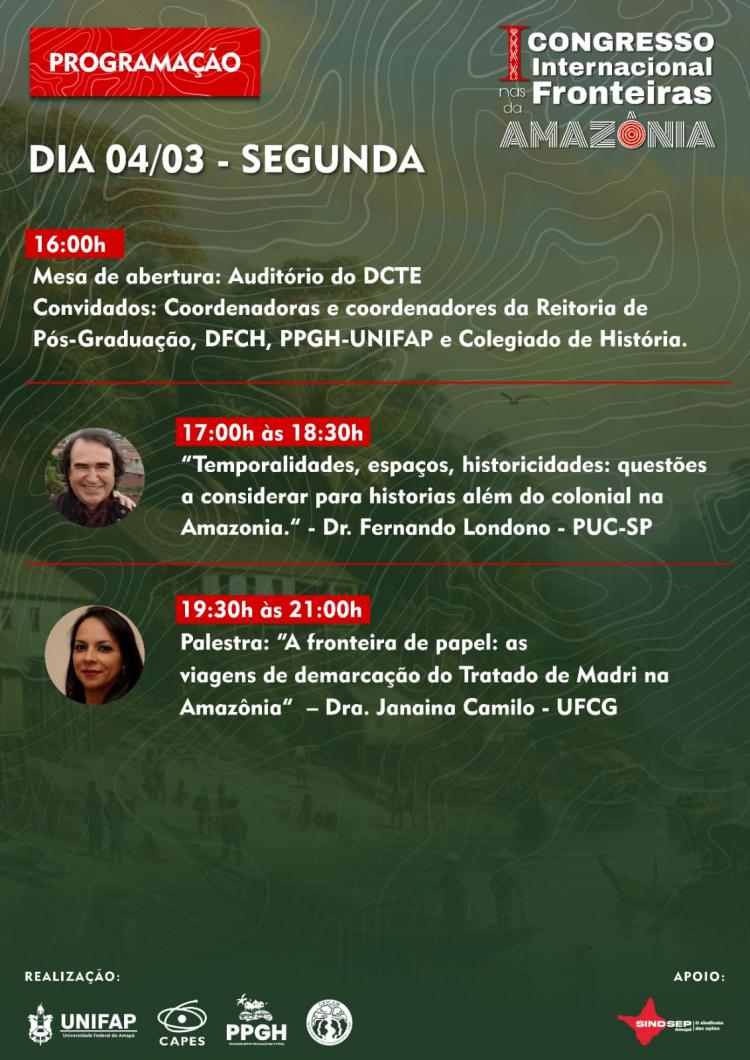 O Grupo de Estudos Coloniais Amazônicos (Gescam), da Universidade Federal do Amapá (Unifap), realiza o I Congresso Internacional nas Fronteiras da Amazônia de 4 a 7 de março de 2024. São ofertadas 200 vagas para diversos minicursos gratuitos no evento.