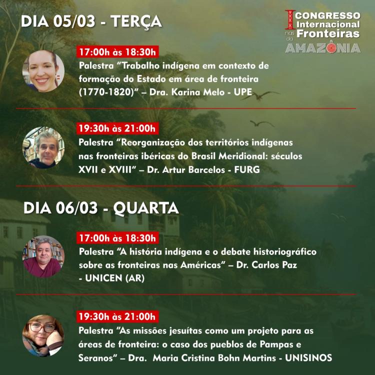 O congresso abordará as relações históricas desenvolvidas nas fronteiras amazônicas desde o período colonial até o pós-colonial, como as missões jesuítas, escravização de povos ameríndios e reorganização dos territórios indígenas.