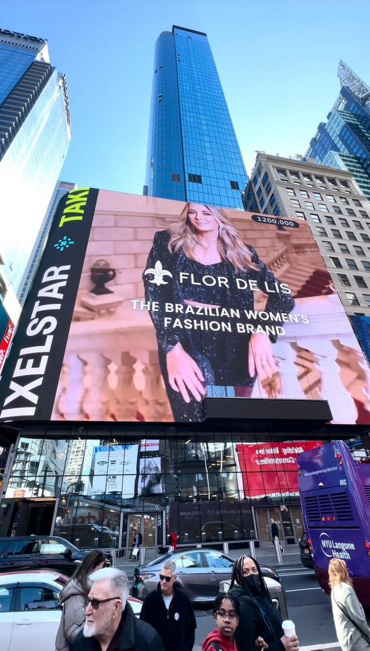 A ação faz parte da campanha de divulgação da coleção de Outono/Inverno da marca Flor de Lis estrelada pela apresentadora. A marca catarinense passou nove dias na Big Apple realizando pesquisas de tendências. “A equipe de estilo fez uma imersão de 09 dias em Nova York, realizando pesquisas de tendência para trazer novidades para o mercado nacional, estamos sempre nos inspirando nos rumos do mercado internacional. O vídeo com duração de 15 segundos circulou no sábado na avenida mais famosa do mundo, estamos muito orgulhosos!”, disse o relações públicas da marca, Guilherme Dudek.