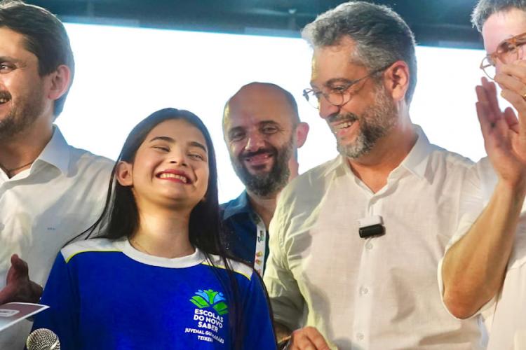 Comunicações para fortalecer a educação pública no Amapá, durante a Caravana Federativa do Governo Federal. Esses computadores serão distribuídos em mais de 30 escolas estaduais, com pelo menos 30 indo para a Escola Estadual de Tempo Integral Juvenal Guimarães Teixeira, em Calçoene. A estudante Lohana Chumber, de 15 anos, agradeceu a doação, destacando sua importância para a comunidade.