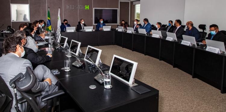O presidente da Ebiserh, Oswaldo Ferreira, em conjunto com as diretorias de áreas como contratualização Hospitalar, infraestrutura hospitalar e hotelaria, além de gestão de pessoas, repassaram um check list com o andamento das diversas ações simultâneas que estão sendo desenvolvidas para a abertura do Hospital Universitário.