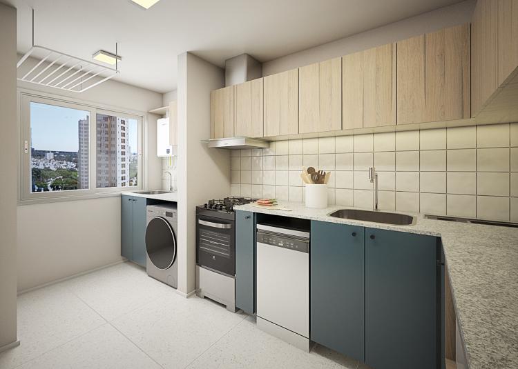 “Esse é um projeto muito procurado e com características neutras – porém nada clichês -, do projeto são desejadas por muitos de nós: madeira, iluminação indireta com led, amplitude e integração dos espaços, um closet maravilhoso, um porcelanato com a referência do granilite e um espaço generoso para receber os amigos. Sem falar no tom azul da cozinha que é elegante e atemporal”, afirma Rafaela Giudice.