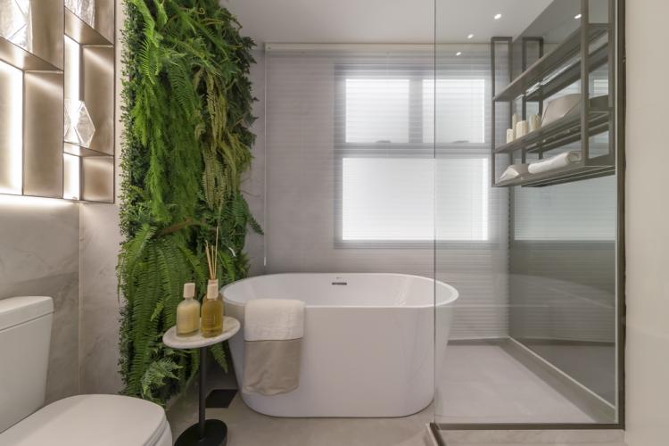 “As banheiras freestanding, também conhecidas como banheira “soltas”, são excelentes alternativas, já que não precisam estar ligadas a uma rede hidráulica. A vantagem desse modelo é que não é preciso mão de obra para acabamentos e instalações específicas”, esclarece Lorena.
