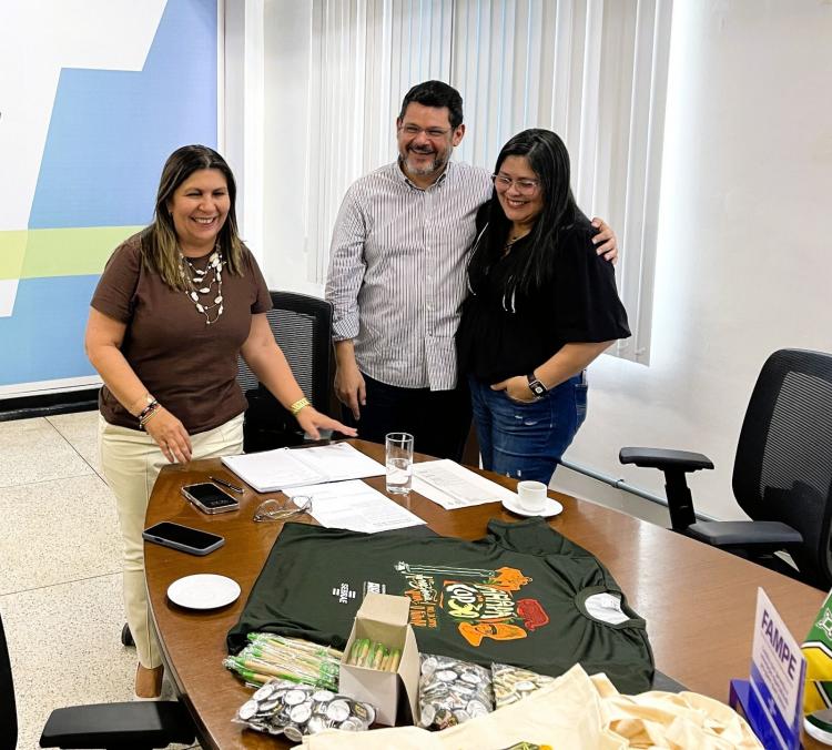 O Serviço de Apoio às Micro e Pequenas Empresas no Amapá (Sebrae) entregou, nesta segunda-feira (3), material institucional que será utilizado pelo Governo do Estado na COP 30. A entrega ocorreu no gabinete da superintendente do Sebrae no Amapá, Alcilene Cavalcante, à assessora técnica da Fundação de Amparo à Pesquisa do Estado do Amapá (Fapeap), Mara Caldas, que representou o Governo do Estado.