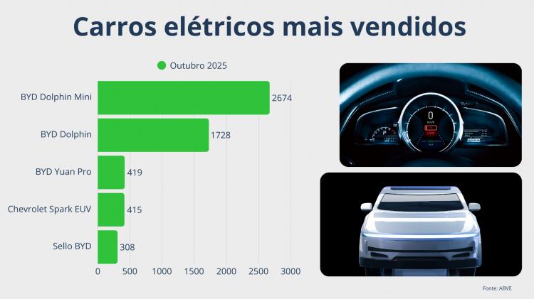 O mercado brasileiro, que concentra 61% da frota regional, mantém o BYD Dolphin Mini como seu veículo mais vendido.