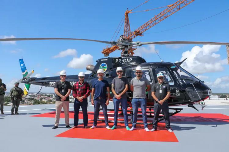 O governador Clécio Luís acompanhou, neste sábado, 27, o pouso de teste da aeronave Gavião 01, do Grupo Tático Aéreo (GTA), no heliponto do Novo Hospital de Emergências (HE) de Macapá. A simulação antecipa a futura dinâmica do transporte aeromédico, que prevê o desembarque direto no hospital, com atendimento imediato aos pacientes e sem a necessidade de transferência por ambulância a partir do aeroporto.