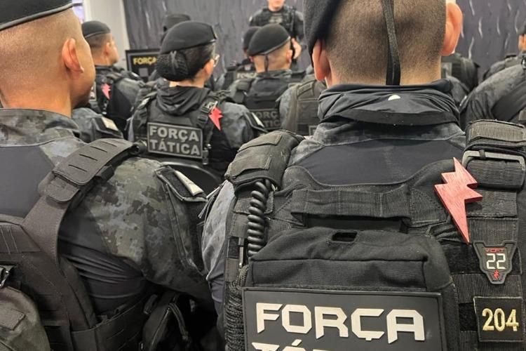 Equipes do Batalhão de Força Tática, empregadas na Operação RENOE (Rede Nacional de Operações Ostensivas Especializadas), na noite de sábado (...