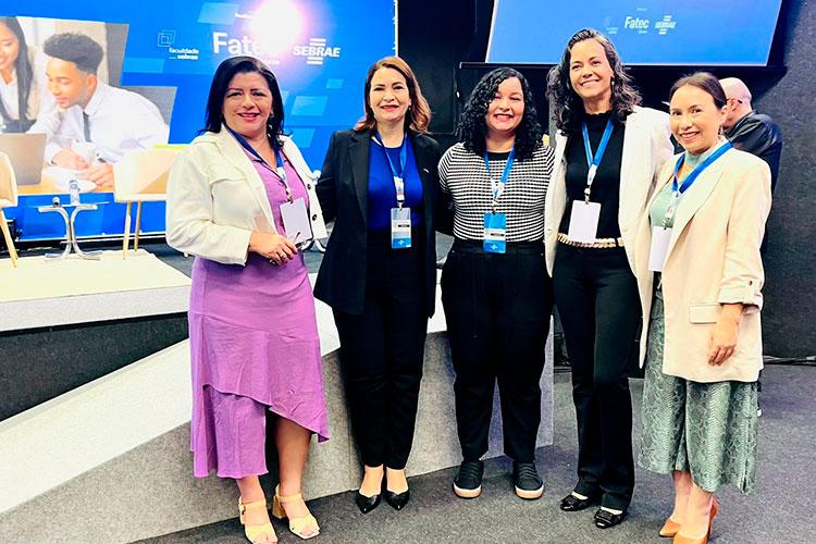 A diretora técnica do Sebrae, Suelem Amoras, gestora do ALI, Nilda Oliveira e a bolsista do ALI, Crisane Carmo, participam do 2º Congresso...