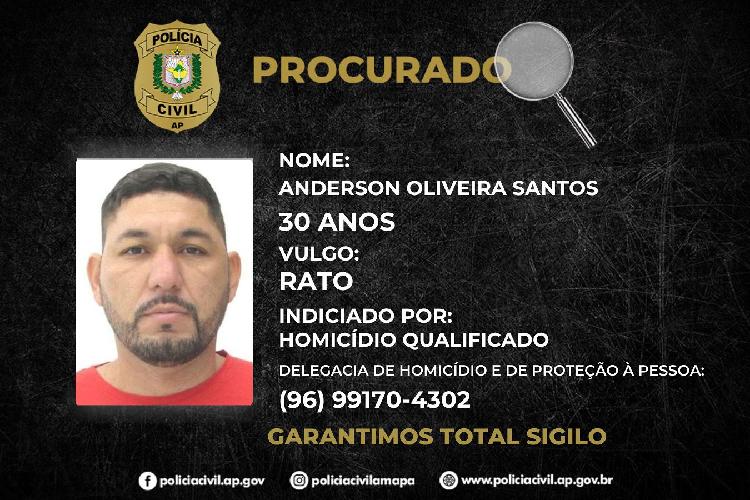 Nesta segunda-feira (13), a Polícia Civil do Estado do Amapá, por meio da Delegacia de Homicídios e Proteção à Pessoa (DHPP), divulgou a imagem de Anderson Oliveira Santos, conhecido como “Rato”, ...