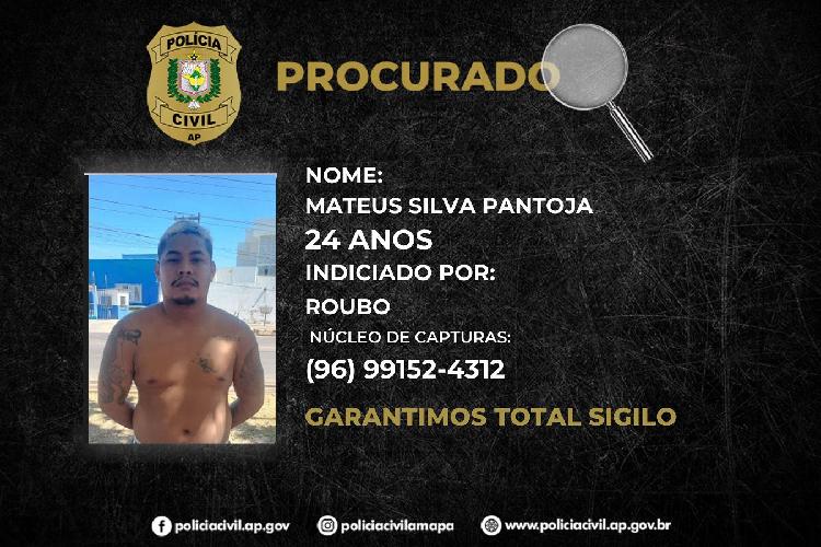 Nesta terça -feira, 9, a Polícia Civil do Estado do Amapá, por meio do Núcleo de Capturas, divulgou a imagem de Mateus Silva Pantoja, vulgo “Bolacha”, de 24 anos de idade, investigado pela prática do cri...