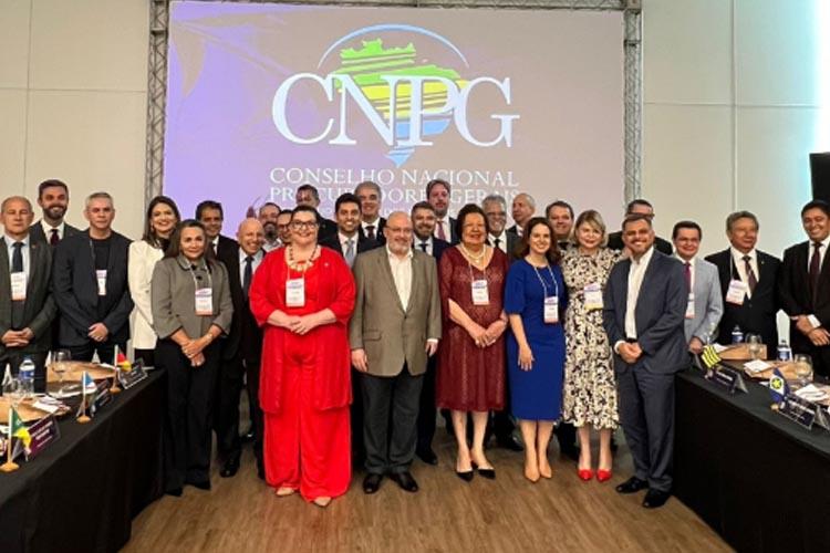 O procurador-geral de Justiça do Ministério Público do Amapá (MP-AP), Paulo Celso Ramos, e a procuradora de Justiça e conselheira nomeada para o Conselho Nacional do Ministério Público (CNMP), Ivana Ce...