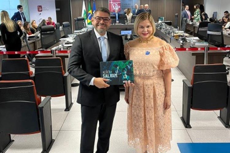 O procurador-geral de justiça Ministério Público do Amapá, Paulo Celso Ramos, e a procuradora de justiça e conselhereira eleita do CNMP, Ivana Cei, estiveram no lançamento da publicação "A&...