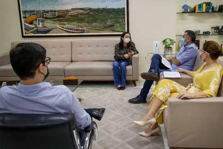 O prefeito de Santana Bala Rocha, recebeu na sala de reuniões da prefeitura, a deputada federal Marcivânia Flexa (PCdoB), o vereador Mário Brandão (PL) e o presidente do Sindicato dos Servidore...