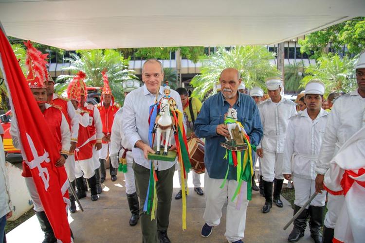 As imagens de São Tiago e São Jorge estão percorrendo órgãos públicos e residências de devotos para anunciar o início da festividade de São Tiago, que acontece entre os dias 16 e 28 de jul...