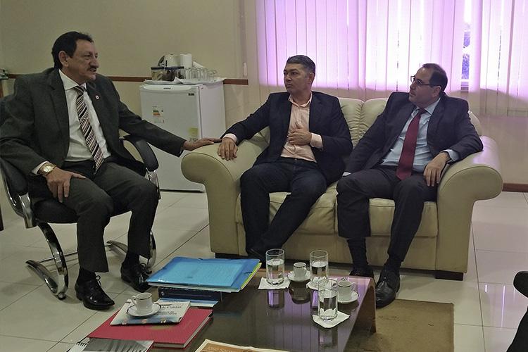 O presidente do Tribunal de Contas do Estado do Amapá, Conselheiro Michel Houat Harb, e o corregedor, conselheiro Regildo Salomão, receberam na sexta-feira (15/02), a visita do promotor de Justiça Roberto Alvarez, da Promotoria d...