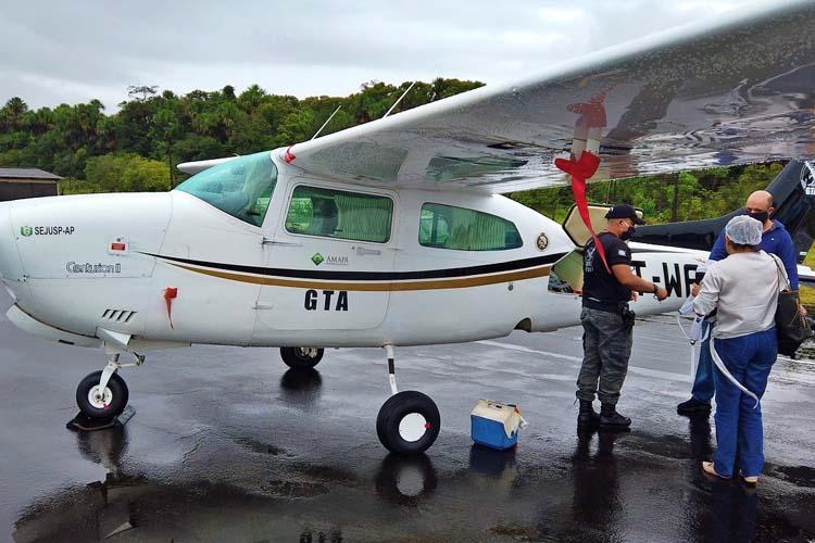 O avião Cessna-210, do Grupamento Tático Aéreo (GTA), levou à Oiapoque, neste domingo, 17, medicamentos e profissionais da saúde para reforçar o enfrentamento ao novo coronavírus. O município fa...